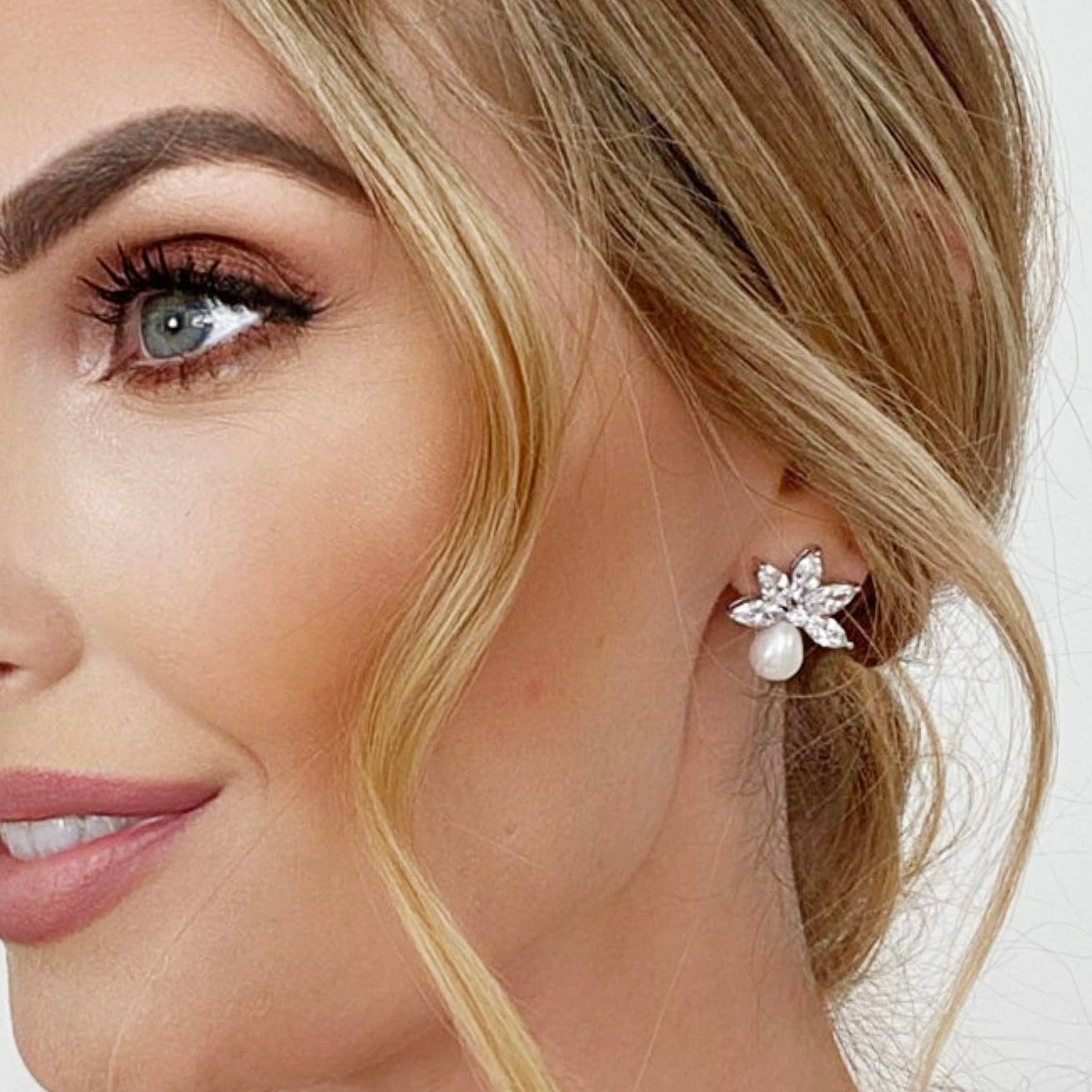 cubic zircona earrings, special occassion earrings, prom earrings, red carpet earrings, crystal and pearl earrings, wedding earrings, bride earrings, bridesmaid earrings, wedding earrings, wedding jewellery, bridesmaid jewellery, Bridal