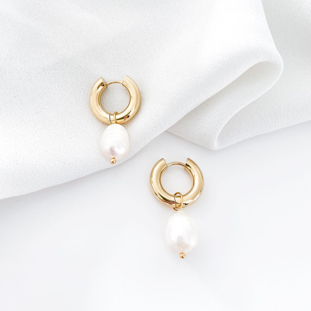 Pearl is detachable, meaning you can wear the gold hoops on their own!